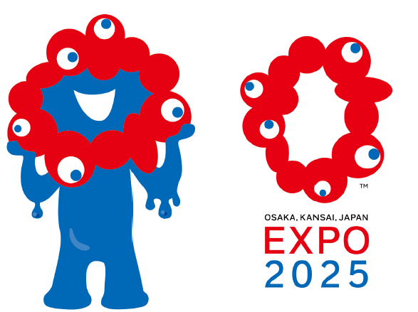 左:公式キャラクターの「ミャクミャク」 右:公式ロゴマーク