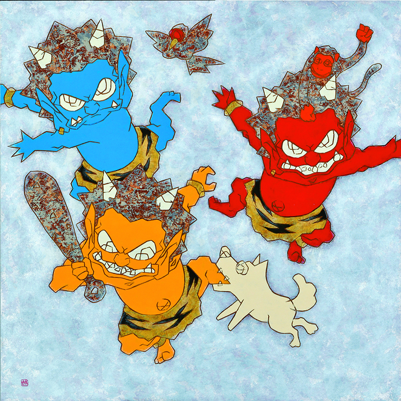 古来より、さまざまな形で語り継がれてきた「鬼」を、38名のアーティストが個性豊かに表現した作品を展示。「和のあかり」に照らされたエントランスから始まる物語は、階段廊下が繋ぐ7つの部屋ごとに異なるテーマを持ち、多彩な「百鬼繚乱」の世界を織り成していく。