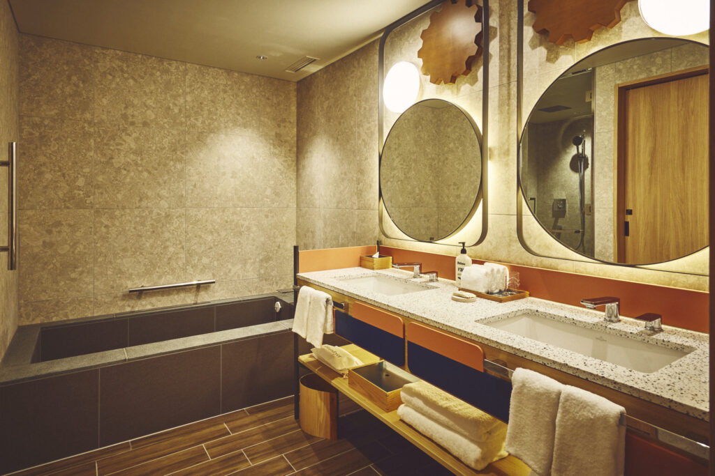 客室のバスルームには、レインフォールシャワーやオーガニックアメニティーを備え、スパクオリティを追求したこだわりの空間が用意されています。ここでは、街の物語を全身で感じながら、至福のリラクゼーションタイムを過ごすことができます。