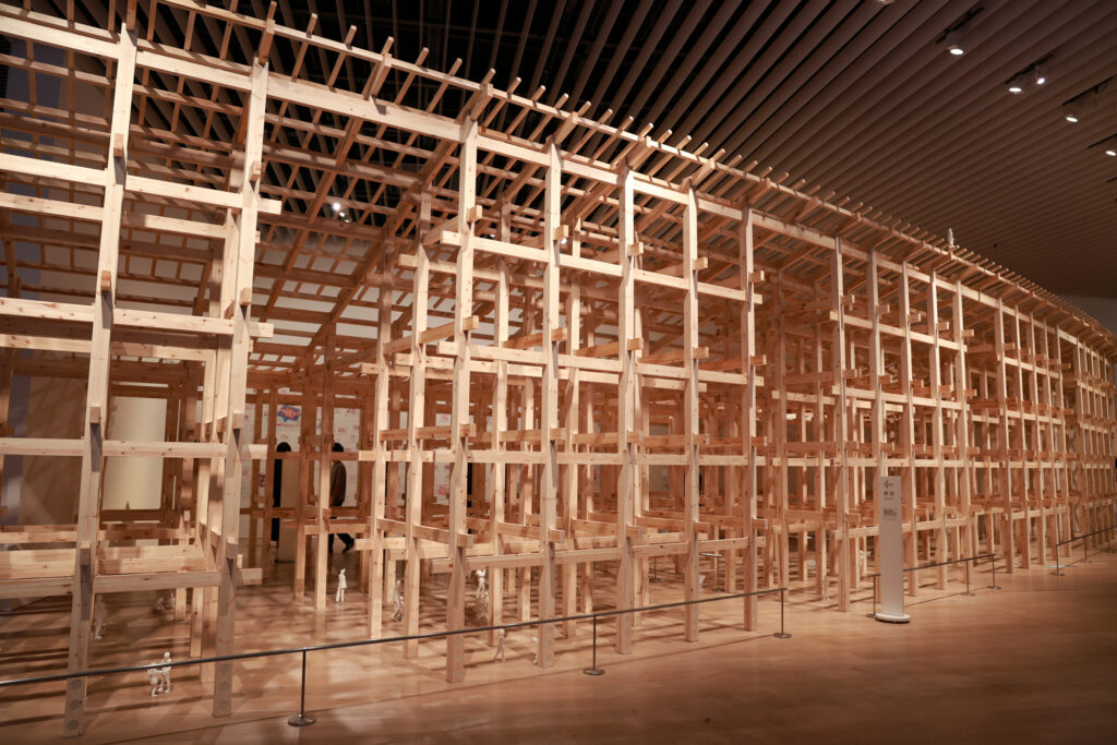 藤本氏が会場デザインプロデューサーを務める2025年大阪・関西万博の《大屋根リング》は、本展の大きな見どころの一つだ。特に注目したいのは、これが日本の伝統的な「貫(ぬき)」接合技術を駆使した、世界最大の木造建築物であるという点。 まさに日本の伝統技術を、万博という未来的な舞台で、かつてないスケールの建築として花開かせる試みと言える。