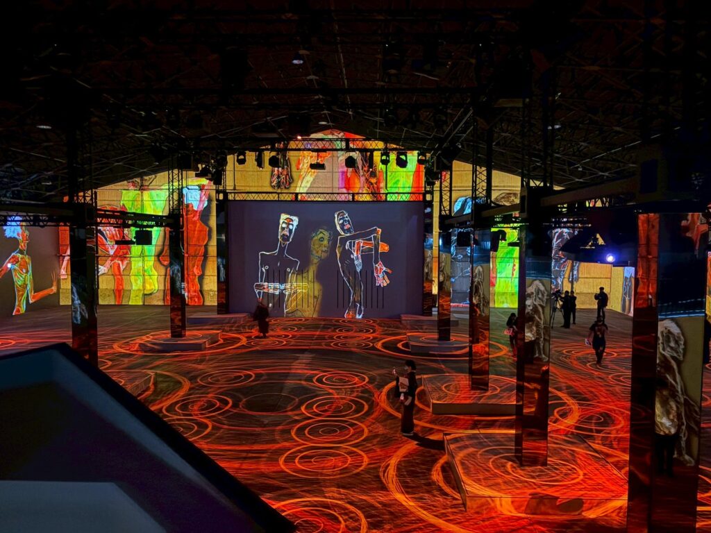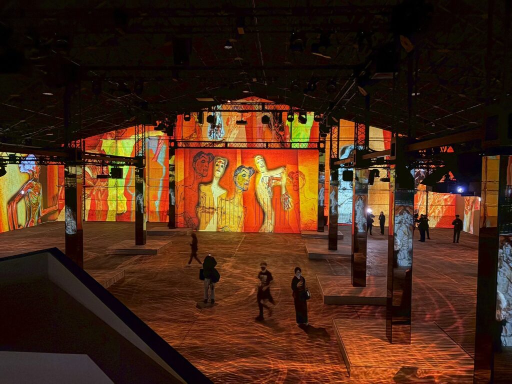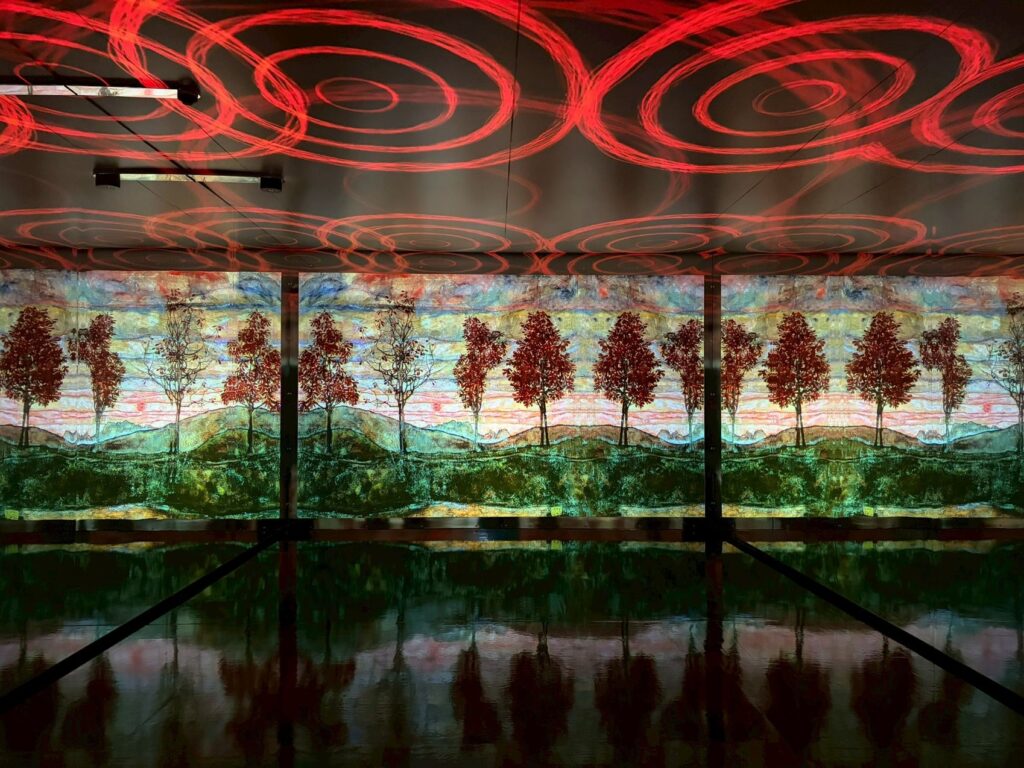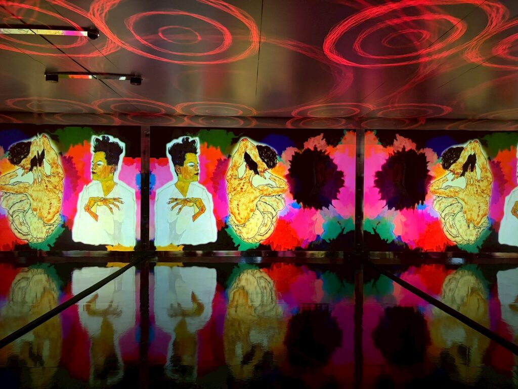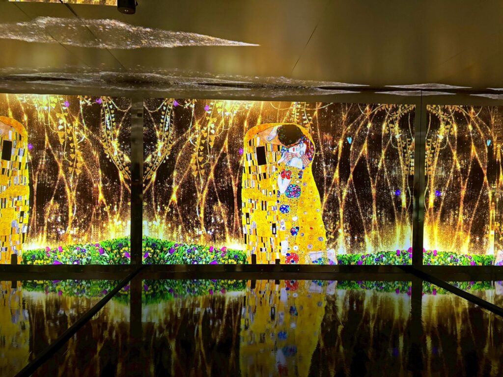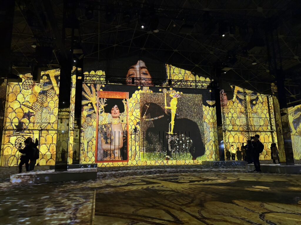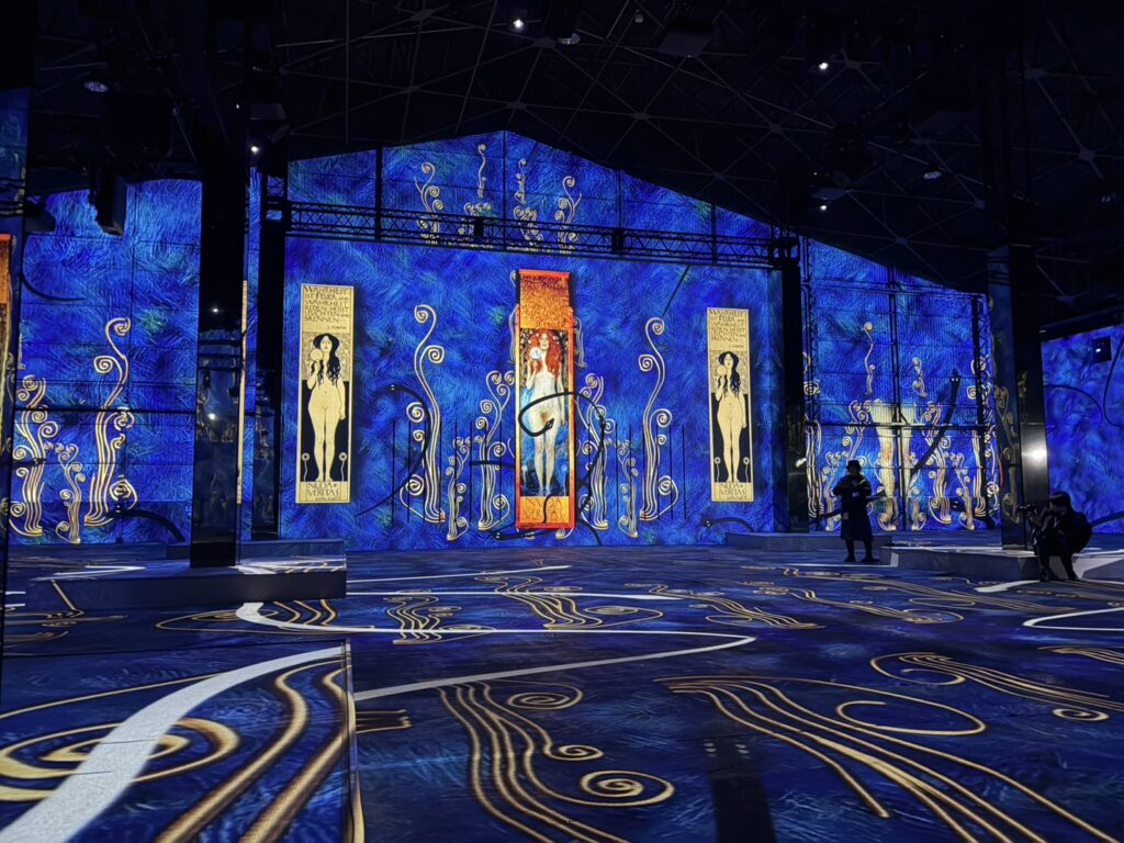 THE MOVEUM THEATERでは、こけら落としのプログラムとして、グスタフ・クリムトとエゴンシーレの作品で構成された52分の映像「ウィーン世紀末芸術『美の黄金時代』グスタフ・クリムトとエゴン・シーレ〜光と影の芸術家たち〜」を上映。75台のプロジェクターと27台のスピーカーによって約1,800㎡の巨大空間に映像と音楽が行き渡り、観客を没入感に誘う。